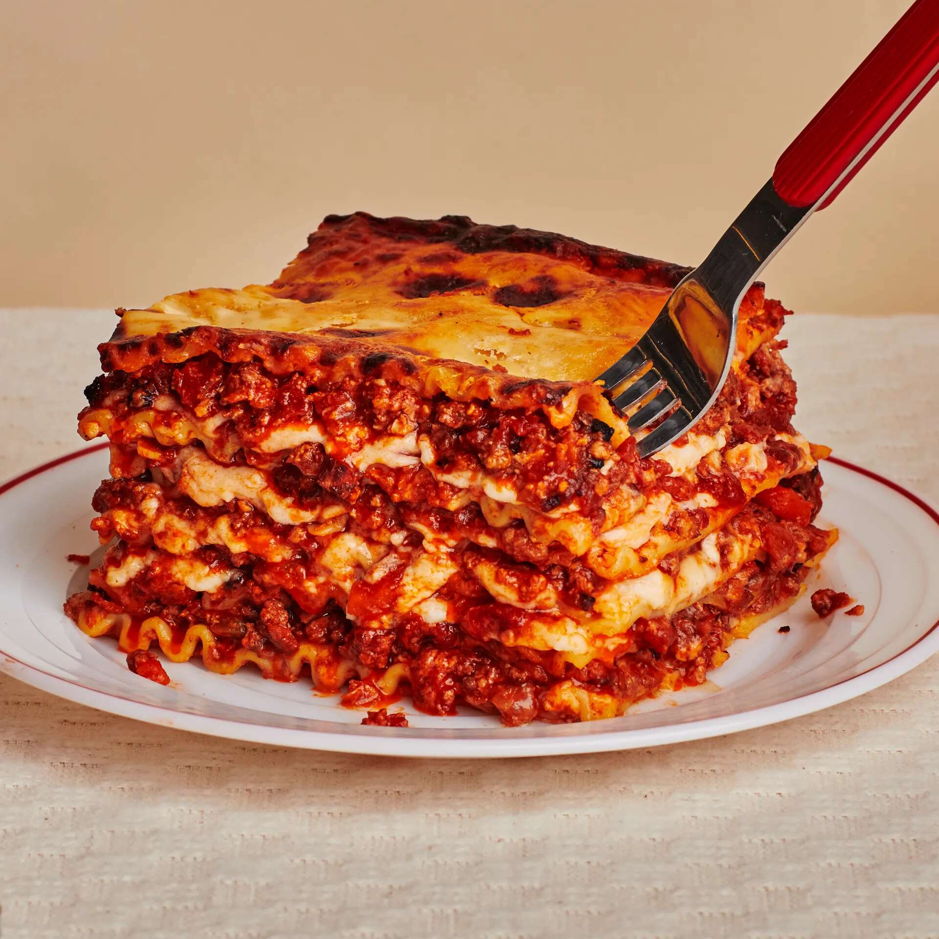 Our top-tier classic lasagna recipe boasts a meaty beef and pork ragù and a creamy, Parmesan-laced bechamel. This is comfort food at its finest.